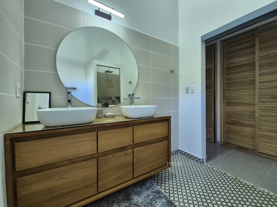 La suite principale bénéficie d’une intimité totale et comprend une chambre avec un lit king-size et une élégante salle de bains attenante avec double vasque et douche. Deux autres chambres spacieuses se partagent une salle de bains bien équipée avec double vasque et douche. Toutes les chambres sont climatisées, garantissant un confort optimal tout au long de l’année.