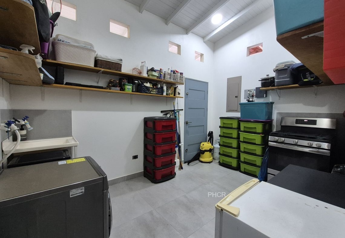 Des rangements astucieusement conçus dans toute la maison et les couloirs contribuent à son aspect pratique. Une buanderie séparée, équipée d’étagères, d’une cuisinière à gaz, d’un lave-linge et d’un sèche-linge, ainsi que d’un accès extérieur, offre une fonctionnalité optimale sans empiéter sur les pièces à vivre principales.