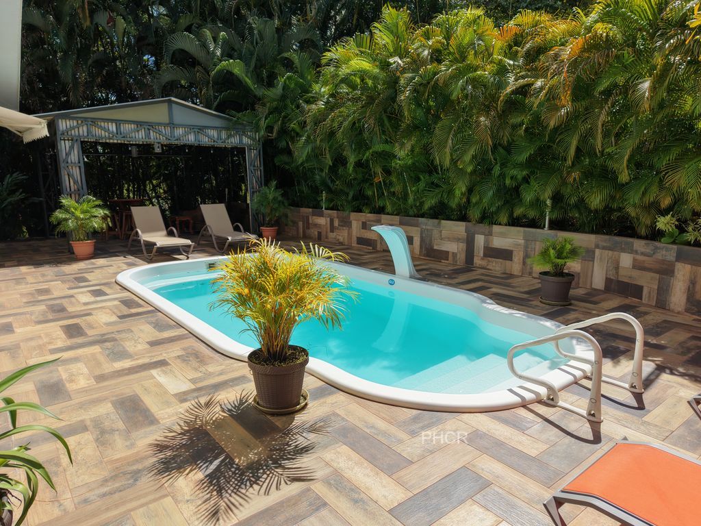 Implantée sur un terrain généreux de 1 199 m², cette maison offre un parfait équilibre entre confort moderne, élégance et vie au grand air. Entourée d’une végétation tropicale luxuriante, elle garantit intimité, ombre et une véritable connexion avec la nature.