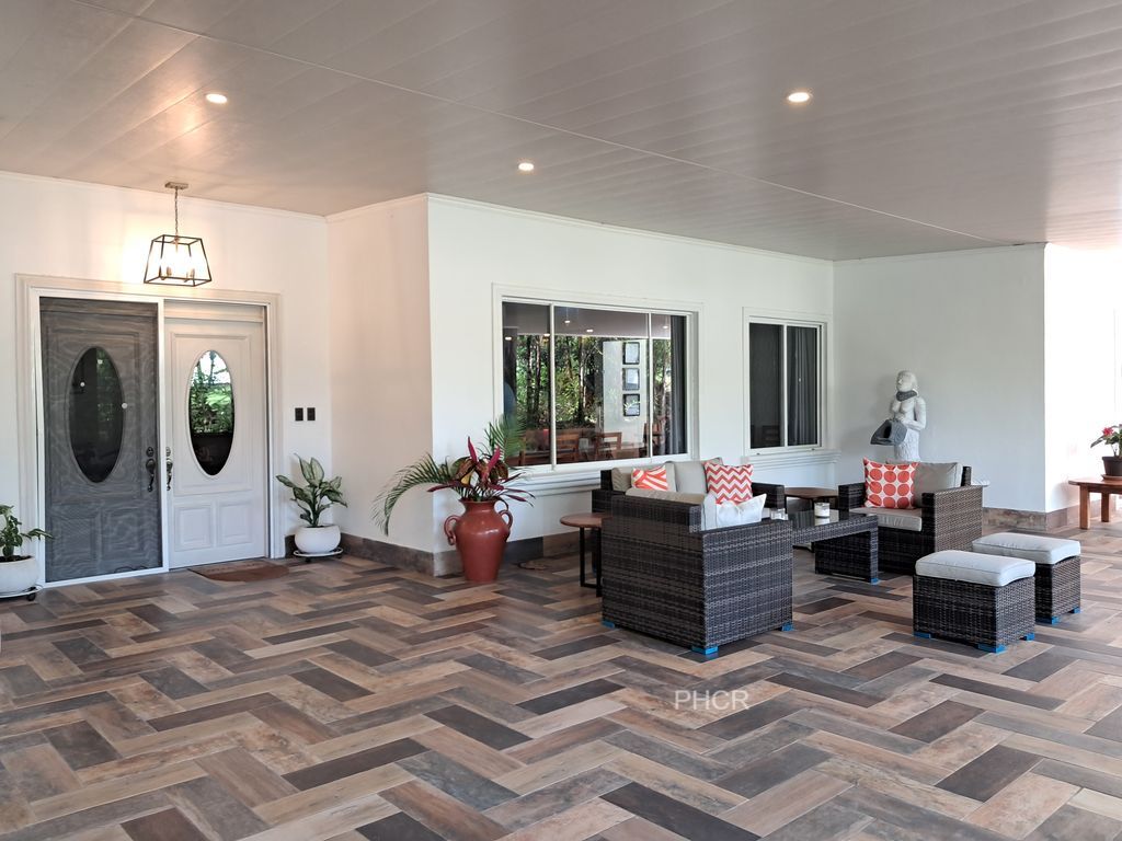 En entrant, vous serez accueilli par une vaste terrasse couverte qui s’étend sur toute la façade de la maison. Elle donne sur une piscine privée avec cascade, un ranch ombragé et des espaces extérieurs conviviaux, parfaits pour se détendre ou recevoir famille et amis.
