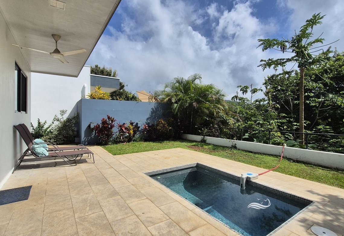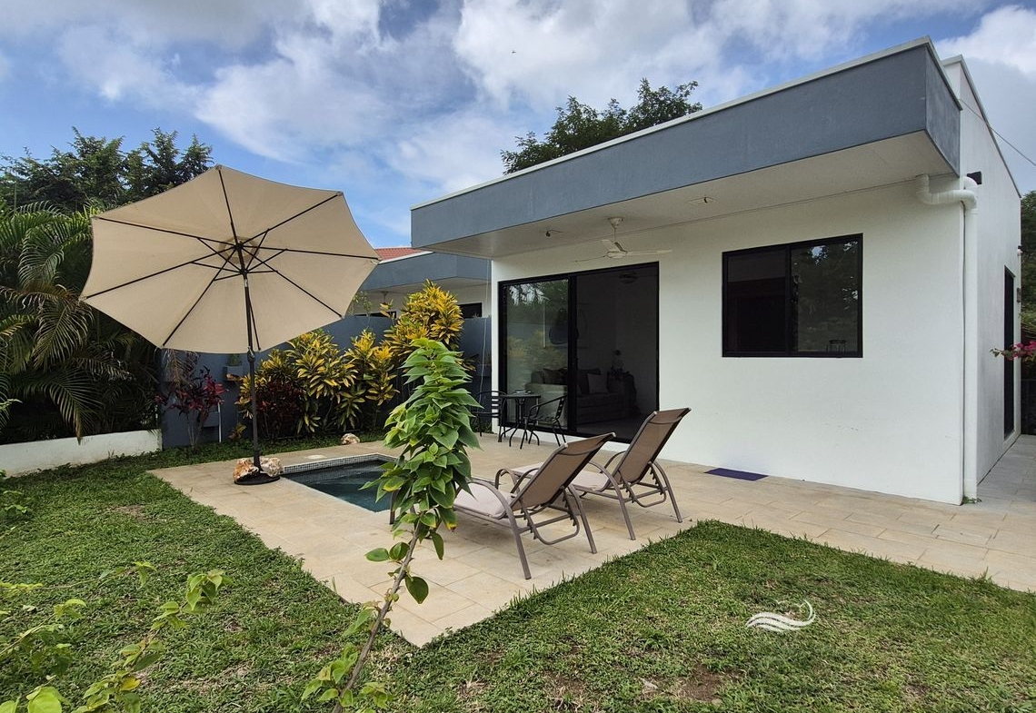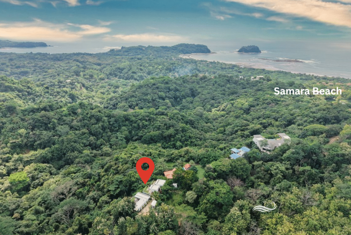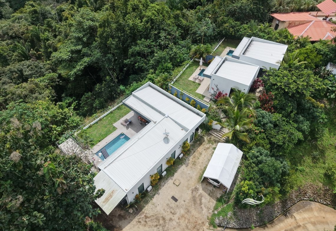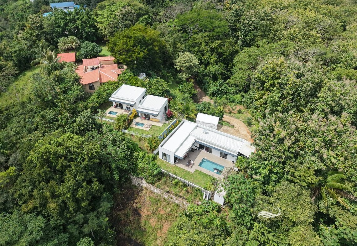 Located on the road to Santo Domingo, just 5 minutes from downtown Sámara and the beach, Casas Matilda offers stunning views of the jungle and valley and comprises three modern-designed houses, perfect for a large family, hosting guests, or generating rental income. Highly versatile, it allows for renting all three houses short or long term, accommodating a large family in the main house while renting the two smaller ones, or simply using the smaller houses as guest accommodations.