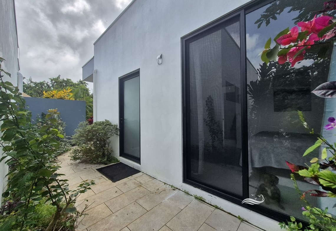 At the rear, two houses complete the property. One includes two bedrooms, a living room with kitchen, and a separate bathroom. The other features one bedroom, a living room with kitchen, and a separate bathroom. From the living area, each house has its own private terrace and pool, offering ideal comfort for independent stays. A small set of stairs provides access to these houses, while maintaining privacy for all occupants.